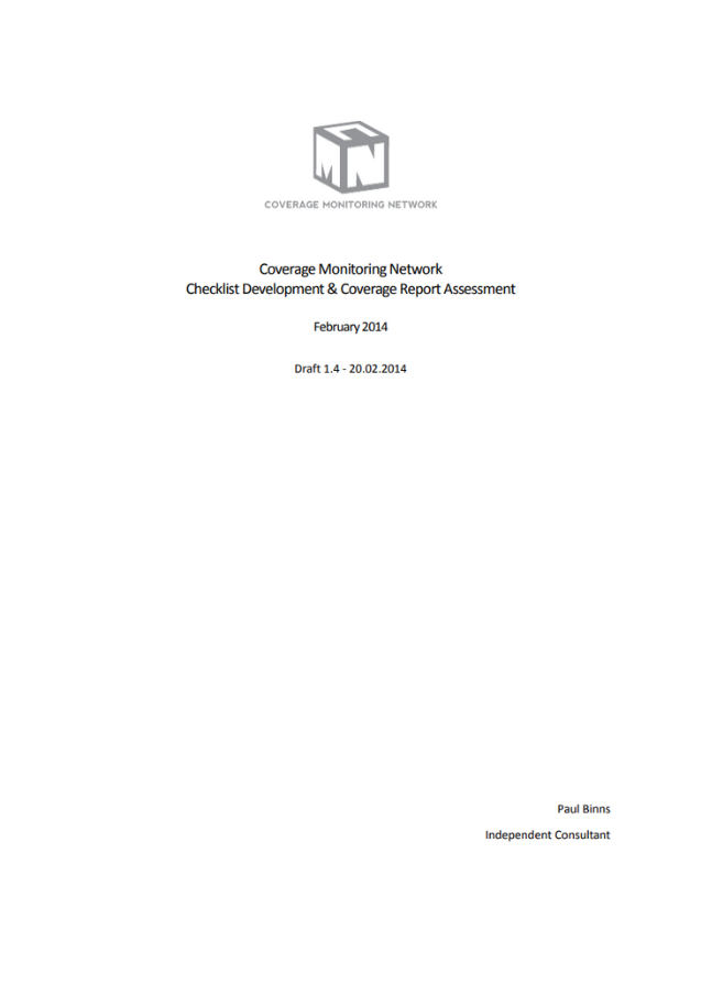 Coverage Monitoring Network – Checklist Development & Coverage Report Assessment
